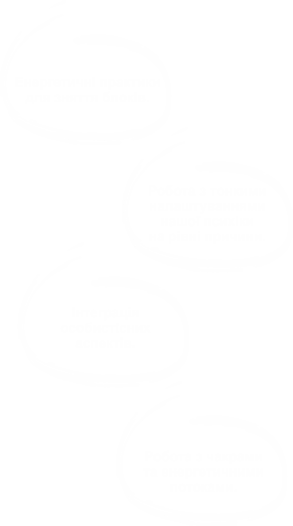 3. Сеанс спрямований на розблокування енергетичних та психологічних бар’єрів, що заважають клієнту розвиватися. Це може включати ідентифікацію та трансформацію сильних переконань, що блокують подальший розвиток. Через використання енергетичних технік терапевт спрямовує клієнта на визнання та трансформацію негативних енергетичних бар’єрів, тим самим сприяючи його внутрішньому розвитку та психологічній збалансованості.